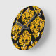 Relógio Redondo Amarelo preto e preto - Damasco moderno personaliz