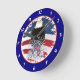 A águia americana ajustou-se na frente da bandeira dos Estados Unidos da bandeira americana com texto dos EUA.