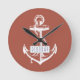 Relógio Redondo Âncora de colheita e nome terracotta náutica