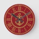 Relógio personalizável elegante com âncora de ouro clássica em fundo plano vermelho.<br> Presente perfeito para o marinheiro ou amante marinho. É fácil personalizar.