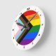 Relógio de parede moderno com a bandeira Progress Rainbow com todas as cores do Orgulho e texto facilmente personalizado / nome "Um Amor". O texto também pode ser excluído, se preferido.