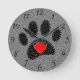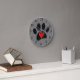 Impressão de pata de cão e desenhos vermelhos. Efeito de impressão de papel claro e antigo aplicado à imagem. Relógios de parede. Arte de desenho animado. Ideia de presente para amantes de cães de todas as idades.