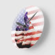 Um grande dedo "como" com a bandeira americana pintada numa mão. A bandeira dos EUA está no fundo. Dons de excelente para feriados patrióticos como Dia dos Veteranos, Dia do Memorial, 4 de julho ou até aniversário.