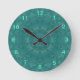 Design de aqua contemporâneo espirra num padrão caleidoscópio, impresso em relógios de parede. Os números são néon aqua verde brilhante. Obrigado por comprar em CherylsArt no Zazzle.