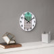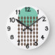 Este relógio de parede tem uma design moderna do século médio com um círculo verde-marinho com correntes de diamante marrom.