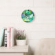 Relógio Redondo Arte de aquarela do deserto azul e verde