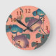 Relógio Redondo Arte Hokusai Clássica de Flor Rosa