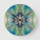 Relógio Redondo Artistic Fluid Abstract in Aqua & Green
