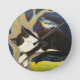 RESTOS DO CAT DO SMOKING EM UM RAMO DE ÁRVORE COM UM PÁSSARO EM SEU PARA TRÁS. AMA PÁSSAROS E NUNCA PREJUDICARIA UM.