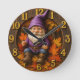 Relógio Redondo Autumn gnome with maple leaves rustic