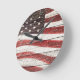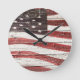 Relógio Redondo Bandeira Americana Pintada na Textura de Madeira R