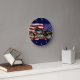 A bandeira dos EUA e a moto clássica figuram neste legal relógio de parede.