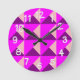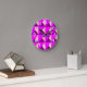 Este relógio de parede tem um design Bauhaus de triângulos sobrepostos em roxo, magenta e rosa.