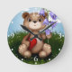 Relógio Redondo Bear Holding Bouquet Flower-30926