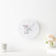 Este relógio de parede de estilo fofo e elegante apresenta uma imagem ilustrada de um bebê e mamãe ou papai elefante segurando balões em forma de coração rosa suave.