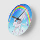 Relógio Redondo Belo Unicórnio Alado, Rainbow & Bubbles Clock