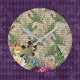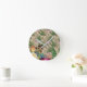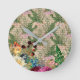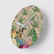 Relógio Redondo Berries roxos e Rosas em Newsprint Ephemera