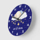 Relógio Redondo Boho Watercolor Elephant Clouds Marinho Blue Nurse