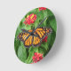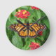 O magnífico Monarca mostrando seu lindo padrão em meio a uma planta de lantana vermelha e amarela.