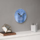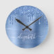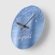 Relógio personalizado elegante e giro, com brilho azul esmaecido, escorregando para baixo uma película metálica azul esmaecida. Monograma com seu nome em um roteiro branco de tendências na moda com baloiços.