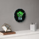 Design de azulejo decorativo divertido apresenta bule verde neon com texto neon "Tea" sobre fundo preto e face do relógio aqua