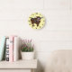 This bull design wall clock is a timekeeping device designed to hang on a wall, serving as both a functional tool and a decorative focal point for a room. Made from acrylic and features a pre-installed backside hanging slot for easy hanging and a non-ticking design. You can customise this wall clock with any text of your choice. Should you require any help with customising then contact us through the link on this page. Brown bull design wall clock