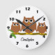 Relógio Redondo Brown Owls Design Personalised