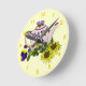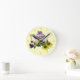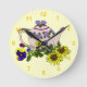 Relógio Redondo Bule cor-de-rosa com as flores no amarelo