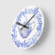 Este relógio de bule de chá tem um design monocromático com um bule de chá azul e branco rodeado por uma grinalda de folhas azuis. Este relógio seria um presente perfeito para qualquer amante de chá.