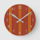 Relógio Redondo Burgundy red and burnt orange five stripe pattern.