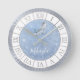 Crie seu próprio relógio da Cinderela em um único e bonito modelo com arte original de Raphaela Wilson. O design de conto de fadas retrata um calçado de vidro elegante/escorregador de cristal com uma bonito borboleta branca e números romanos ricos para os números. Adicione um nome personalizado, monograma ou iniciais, e este relógio da princesa pode fazer um presente personalizado memorável em qualquer celebração onde este tema real é chamado como: Casamentos da Cinderela, uma quinceanera azul bebê / marmelo, festa de aniversário, chá de fraldas e outros momentos especiais no inverno. Até mesmo use esses relógios de Cinderela como decorações para seu castelo de quarto, decoração de cozinha doméstica ou presentes de escritório mágicos. Sinta-se à vontade para personalizar ainda mais a design da princesa para revelar outro trabalho de arte criativo a adicionar ao seu relógio, como uma carruagem de abóbora desenhada por cavalos com borboletas / coroa e uma face de relógio gráfico svg que você pode mudar para quaisquer 4 cores - mesmo em tons de rosa, se desejar! Preferir a tipografia de tendências diferentes? Basta selecionar o script de caligrafia moderno e alterá-lo para outra fonte que melhor se adapte ao seu estilo. Você poderá assistir enquanto o relógio quase atinge meia-noite (doze) em tempo real. Aproveite! Categoria: adoráveis ideias de presentes da Princesa Cinderela para crianças e adultos. Tema das cores: pasta azul clara, azul poeirento macio, cinzas claras, cinzas escuras, prata metálica falsa e branco-brilho de diamante.