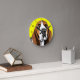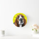 Basset Hound com olhos tristes sobre um fundo amarelo que pode ser personalizado, a cor dos números de clock e pontos também pode ser alterada