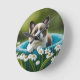 Relógio Redondo Cãozinho fofo floral em deslumbrantes