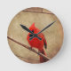 Um cardeal sentado na minha árvore Mimosa esperando sua vez no alimentador de pássaros.