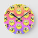 Relógios de parede de cor pastel personalizados. Desenho de corujas de bebês em fundo colorido. Padrão de personagem de desenho animado bonito. Ideia de presente para crianças.