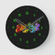 Relógio de Parede com ilustração de dragões arco-íris nas cores LGBT (lésbicas, gay, bissexuais e pessoas transexuais), bandeira do orgulho de listras, design de fantasia sobre fundo negro