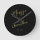 Relógio Redondo Casamento com Letras Douradas de Mão Negra Moderna