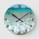 Relógio Redondo Cena de Aquarela de Praia Vibrante