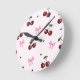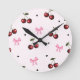 Relógio Redondo Cherry & Pink Bows Pattern - Coquette Aesthetic