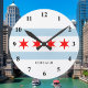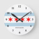 Chicago city flag custom round wall clock. Personalize with your own text optionally. Great for home, office, shop, bedroom, public space etc. Background color can be changed too.