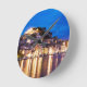 Pintura da cidade de Sibenik na Croácia. Cidade iluminada com fortaleza, edifícios antigos, mar e céu azul. Porto de Sibenik, Croácia à noite, vista à hora azul na Rua.