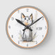Relógio Redondo Cinzas Doce e Ilustração de Gato Laranja