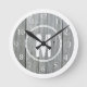 Relógio Redondo Cinzas Monogramas Madeira Branca Vestida