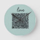 Um design de código QR atraente visualmente com a palavra "Amor" exibido em cima. O próprio código QR é limpo, bem definido. O design geral é simples, mas elegante.