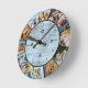 Relógio Redondo Colagem de Fotos Rustic Faux Blue Wood Fence 12