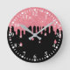 Relógio Redondo Coleta de Efeito Luminoso Rosa e Estilhaços
