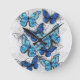 Relógio Redondo Composição de Borboletas Brancas e Azuis