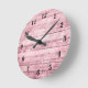 Este design apresenta uma imagem de conselhos de celeiro de madeira, cor-de-rosa angustiados, com uma cor damasco desbotada. Números negros grandes e fáceis de ler rodeiam a borda. Uma adição exclusiva ao seu chique ou decoração de uma fazenda.