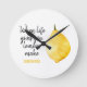 Relógio Redondo Cota Amarelo Limão Engraçado Moderno