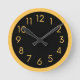 Um simples e moderno relógio da cozinha amarela e preta para combinar com a decoração da cozinha.